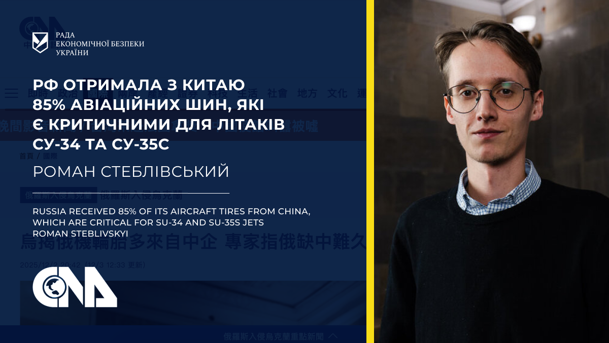 Russia received more than $60 million worth of aircraft tires and tire-production materials from China in 2024, critical for Su-34 and Su-35S military aircraft, Taiwan’s Central News Agency (CNA) reports, citing new research by the Economic Security Council of Ukraine (ESCU).